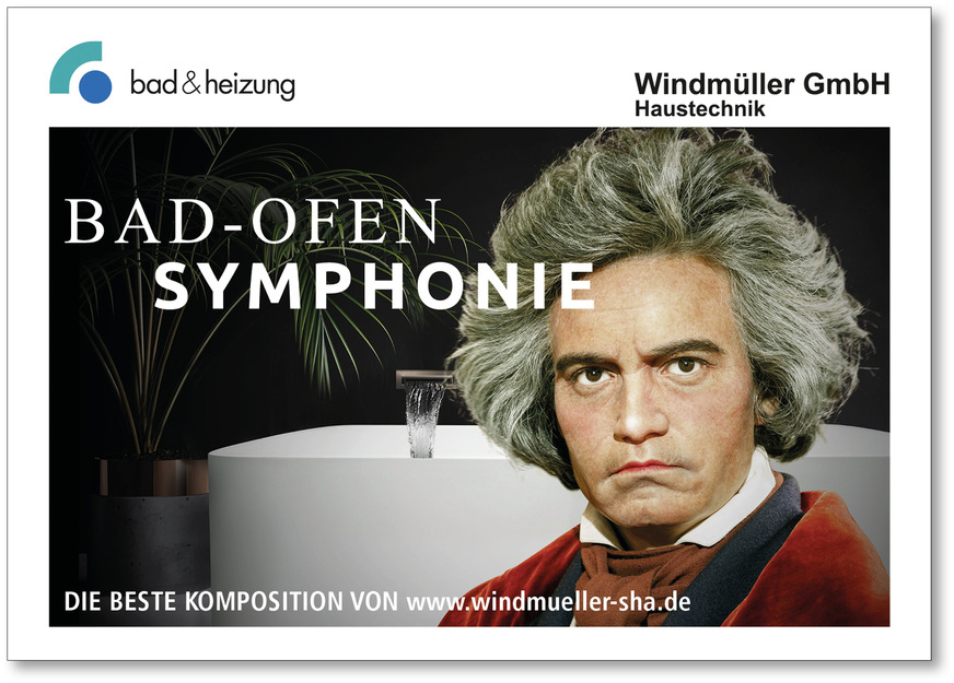 Witzig, frech und unvergleichlich: Die neue Imagekampagne hat es in sich. Lust auf mehr – mit den verschiedenen Motiven können die Mitgliedsbetriebe Zielgruppen je nach Bedarf ansprechen. Jedes der Motive „spielt“ auf einen Musiker bzw. dessen Album an (siehe Zusammenstellung auf dieser Seite). Capital Bra und das Festival „Rock am Ring“ finden großen Anklang bei Auszubildenden und jungem Publikum. Beethovens Symphonie spricht die Klassik-Fans an und Michael Jackson, AC/DC, The Beatles und Guns n’ Roses sind einfach Kult! Das bad&heizung-Image bekommt einen neuen Schliff und die Marke wird direkt mit guter Musik und guter Laune verknüpft. Das Lead-Design erinnert an ein Festival und rahmt somit die ganze Kampagne ein. Von der Anzeigenvorlage bis zum T-Shirt, vom Poster bis zum Promotion-Zelt für die Hausmesse, Azubi- und Monteurwerbung sowie vom individualisierbaren Werbespot bis zum Banner am Bauzaun bietet die bad&heizung AG den Mitgliedern ein emotionales Feuerwerk, das den Betrieben unmittelbar hilft.