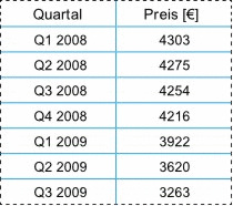 Ein Blick auf den Preisindex, der vom Bundesverband Solarwirtschaft quartalsweise veröffentlicht wird, zeigt, dass die Preise seit 2006 um mehr als 35 % gesunken sind. So liegt der Endkundenpreis bei einer fertig installierten Aufdachanlage bis 100 kWp im 3. Quartal 2009 im Durchschnitt bei 3263 Euro. Befragt wurden hierzu vom Marktforscher EuPD Research 100 Installateure verteilt auf ganz Deutschland.