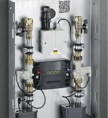 Eine neue, intelligente Elektronik ermöglicht Vereinfachungen bei der Inbetriebnahme, der Einbindung in eine Gebäudeautomation sowie bei der Dokumentation, dem Monitoring und der Analyse von Betriebsdaten. Die Parametrierung der Spülstation ist direkt am Gerät über ein klar gegliedertes Display möglich, aber ebenso über ein lokales Netzwerk, eine Gebäudeautomation oder mit mobilen Endgeräten via Internet. Als Schnittstellen stehen dazu wahlweise Ethernet, ein Gebäudeautomationsmodul mit acht binären Ein- und zwölf Ausgängen oder eine frei programmierbare API-Schnittstelle bereit. Bei einem Internetanschluss bietet Viega nach einmaliger Anmeldung auf dem Server die Möglichkeit zur zentralen Verwaltung sämtlicher Spülstationen eines Objektes. Für den Zugriff auf eine Spülstation mit einem Smartphone oder Tablet ist keine zusätzliche App erforderlich. Die Verbindung stellt eine Web-Applikation her.