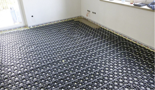 Nach der Auswertung aller Anforderungen der nachträglichen Installation einer Fußbodenheizung im Rahmen einer Sanierung fiel die Wahl auf das x-net-C15-Dünnschichtsystem von Kermi. Speziell für die Aufgabenstellung Renovierung entwickelt, verfügt das x-net C15 über eine Vielzahl systemspezifischer Vorteile. Die niedrige Elementhöhe von nur 14 mm erlaubt einen Bodenaufbau von nur 17 bis 22 mm. Diese geringe Höhe hat nicht nur bauliche und Gewichtsvorteile. Durch die flache Überdeckung des Heizrohres und die daraus resultierend geringe zu erwärmende Masse kann das System mit niedriger Vorlauftemperatur betrieben werden. Dies führt gleichzeitig zu schnellen Reaktionszeiten und zu einer verzögerungsfreien Temperaturregelung. In Verbindung mit Niedrigtemperatur-Heizsystemen wie Brennwertkesseln, Solaranlagen und Wärmepumpen, trägt das System somit außerdem zur Energieeinsparung bei – dies gilt natürlich auch für den Neubau.