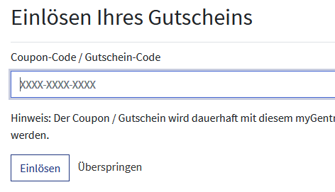 - Lösen Sie bitte im nachfolgenden Eingabefeld Ihren Coupon-Code ein: