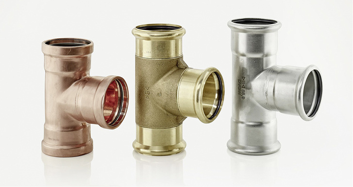 Die IBP-Gruppe hat die >B<-Press-Familie erweitert. Ab sofort sind die Fittings der >B<-Press-Serie aus Kupfer, Rotguss und Edelstahl bis 108 mm verfügbar. Die >B<-Press-Fittings aus Kupfer sind nahezu universell einsetzbar. Die >B<-Press-Fittings aus Rotguss sind für Kupfer-, Edelstahl- und C-Stahlrohr geeignet. Die Serie >B<-Press-Inox aus Edelstahl ist DVGW-baumustergeprüft und für alle Trinkwässer zugelassen.