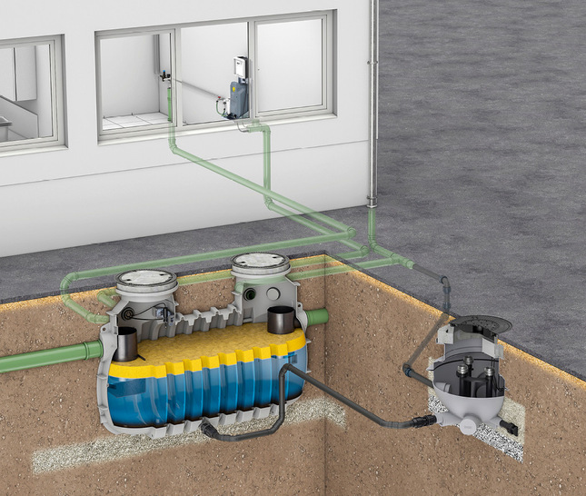 Mit dem LipuMax‑P‑H bietet Aco Haustechnik einen erdverbauten Fettabscheider, dessen separater Entsorgungsschacht flexibel an einer optimal zugänglichen Stelle platziert werden kann. Das Produkt kombiniert Fettabscheidung und Schlammfang in einem platzsparenden Behälter und ist in den Nenngrößen 10, 15 und 20 verfügbar. Es stehen zwei Ausbaustufen zur Wahl – entweder mit Direktabsaugung oder mit Direktabsaugung und vollautomatischer Hochdruck-Innenreinigung. Die Auftriebssicherheit ist bis zu einer Höhe von 1,65 m über der Behälterunterkante durch entsprechende Aufsatzsysteme und Lastverteilerplatten gewährleistet. Der Abscheider hat zwei Wartungsöffnungen mit einem Durchmesser von 840 mm und eine maximale Zulauftiefe von etwa 1,90 m. Der aus Polyethylen gefertigte Entsorgungsschacht ist für Belastungsklassen B 125 oder D 400 geeignet und kann als zentraler Sammelpunkt für mehrere Fettabscheider dienen. Er umfasst, je nach Ausführung, den Anschluss von bis zu drei Absaugleitungen oder den zusätzlichen Anschluss an eine bauseitige Pendelgasleitung.