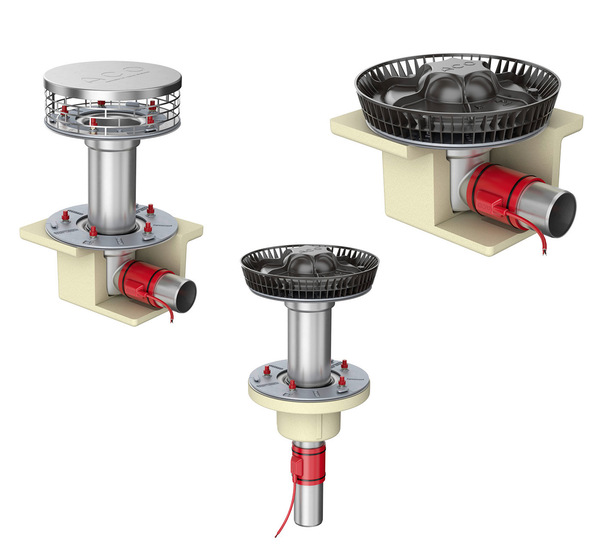 Der Flachdachablauf Variant-Flex aus Edelstahl kann durch den einheitlichen Produktaufbau sowohl zur Freispiegel- als auch zur Unterdruckentwässerung eingesetzt werden. Der modular konzipierte Ablauf ist in den Nennweiten DN 50 bis DN 125 erhältlich. Die kompakte Bauform mit geringen Aussparungsmaßen von 190 x 260 mm erfordert nur kleine Öffnungen im Dach. Flachdachabläufe in den Nennweiten DN 50 bis DN 100 mit Stutzenneigung 90° benötigen eine Kernbohrung von nur 160 mm inkl. Isolierung. Die Vereinheitlichung des Flachdachablaufs bringt eine Reduzierung der Systemkomponenten mit sich. Das vereinfacht die Planung und Installation. Der Kiesfang zur Freispiegelentwässerung sowie die Luftschleuse für die Unterdruckentwässerung lassen sich durch eine Drehbewegung werkzeuglos auf dem Alu-Druckgussflansch verriegeln. Die Systemlösung eignet sich für nahezu jede Dachvariante – sei es Warm- oder Kaltdach, Beton-, Trapezblech-, Umkehr- oder Gründach.
