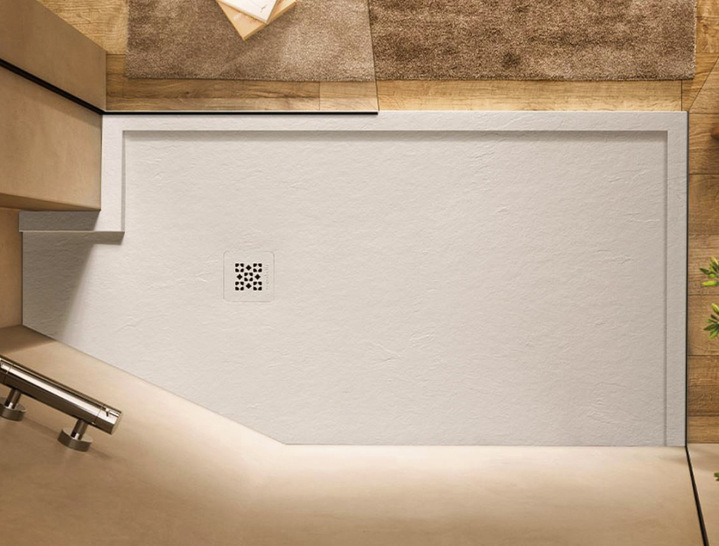 Acquabella hat für den Ablauf seiner Duschboardmodelle Base und Arq drei neue Abdeckungen entworfen: Mia, Geo und Lux (im Bild). Mia, eine Weiterentwicklung ihres Vorgängers, ist in den Werkstoffen Akron und Edelstahl erhältlich, während Lux und Geo nur in Akron angeboten werden. Wie bereits bei den Akron-Gittern werden die neuen Designs auch in die hochauflösenden Texturen der Base-Modelle – Slate, Beton, Zero und Nude – sowie in die Farbe der Duschwanne integriert, um den charakteristischen durchgehenden Effekt der Fläche zu erhalten.