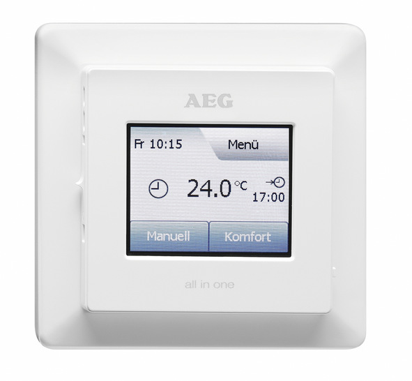 AEG Haustechnik bietet für die elektrische Fußbodentemperierung „Thermo Boden“ einen Komfortregler mit Touchscreen-Technik an: Der FRTD 903 TC zur Regelung der Fußbodentemperatur in Einzelräumen ist mit allen Funktionen ausgestattet, die eine wirtschaftliche und energieeffiziente Betriebsweise ermöglichen. Mit einer Wochenprogrammuhr und der individuell menügeführten Programmierung, die gemäß den persönlichen Nutzungsgewohnheiten und Bedürfnissen belegt werden kann, bietet der Regler alle Vorzüge moderner Regelungstechnik. Die lernfähige Regelung berechnet den Start- und Endzeitpunkt der Heizphase automatisch. Überdies verfügt der Komfortregler über eine integrierte „Fenster-offen-Erkennung“: Sie deaktiviert den Heizvorgang automatisch, sobald sie einen rapiden Temperaturverlust registriert, welcher nur durch ein offenes Fenster entstehen kann.