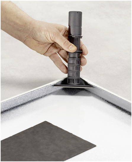 Zur werkzeuglosen Montage von Duschwannen auf dem Rohfußboden hat Bette die Systemfüße BetteLevel entwickelt. Sie sind mit einer selbstarretierenden und auf den halben Millimeter genauen Rastung ausgestattet. Die patentierten Kunststoffzylinder werden in den Ecken der Duschwanne verklebt. Danach wird die Duschfläche am Einbauort aufgestellt und vom Monteur – am besten mit Saughebern – zwischen 80 und 200 mm auf die spätere Fußbodenebene angehoben. Mit einer aufgelegten Wasserwaage wird die Nivellierung beim Anheben kontrolliert und beendet, wenn das Wunschniveau erreicht ist. Sind die Füße irrtümlich zu hoch ausgezogen, lässt sich die Rastung durch Anheben lösen, zurück in die Ausgangsposition bringen und erneut einjustieren. Das Funktionsprinzip soll nach Herstellerangaben bis zu 90 % des Installationsaufwandes reduzieren. Die Systemfüße sind universell für Duschflächen jeder Größe einsetzbar. Jeder Fuß trägt bis zu 150 kg. Besonders große Duschflächen können mit sechs oder mehr Füßen stabilisiert werden.