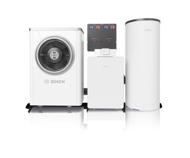 Das bodenstehende System Condens Hybrid 8000i F kombiniert den Gas-Brennwertkessel Condens 8000i F, den Hybridmanager MH200 und die Wärmepumpe Compress 7000i AW sowie einen Wasserspeicher mit 160 l bzw. 277 l Volumen. Eine abgestimmte Hydraulik an der Rückseite des Kessels sorgt dafür, dass die Anlage ohne Wärmepumpen-Inneneinheit auskommt. Zudem ist die Wärmepumpe über die Kesselregelung parametrierbar. Abhängig von der Raumsituation kann das Hybridheizsystem kompakt mit liegendem oder stehendem Speicher eingebaut werden.