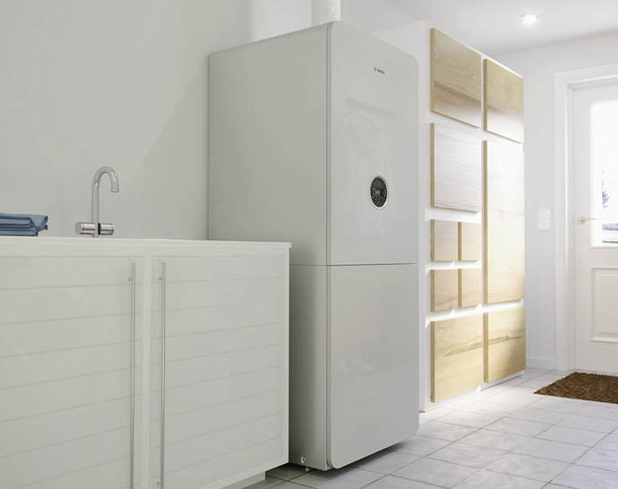 Mit dem Gas-Brennwertgerät Condens 5300i WMA erweitert Bosch sein Portfolio der kompakten Heizungen und „Renewable-ready“-Lösungen. Die Geräte der WMA-Serie erlauben über einen Hybridmanager die Nachrüstung einer Bosch-Luft/Wasser-Wärmepumpe, um künftig auch im Bestand möglichst einfach von regenerativen Energien zu profitieren.