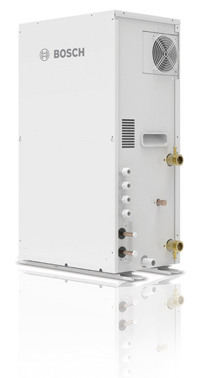 Die Hydrobox von Buderus ist eine praktische Erweiterung für VRF-Klimasysteme. Beim Drei-Leiter-System AF6300A (mit Wärmerückgewinnung) führen drei Kältemittelleitungen (Flüssigkeits-, Sauggas- und Heißgasleitung) von der Außeneinheit ins Gebäude. Diese Geräteserie lässt sich optional um die Hydrobox zur Warmwasserbereitung ergänzen. Sie bestitzt hat dazu einen weiteren Kältekreislauf (R-134a) inklusive Kompressor. Mit den Klimageräten der Serie AF6300A lassen sich bis zu 58 Inneneinheiten im System verbinden, in Kaskade bis zu 64. Die Leistungsbereiche liegen zwischen 22 kW und 50 kW, in Kaskade bis zu 150 kW.