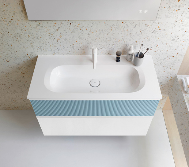 Die Serie Fiumo 2.0 von Burgbad umfasst Badmöbel mit modularen Gestaltungsmöglichkeiten. Sie ist als Weiterentwicklung der früheren Fiumo-Modelle konzipiert und bietet unterschiedliche Kombinationen aus Waschtischen, Unterschränken, Spiegeln und weiteren Stauraumlösungen. Die Fronten der Möbel sind vertikal strukturiert und als Thermoform-Oberflächen ausgeführt. Die Serie ist in verschiedenen Breiten, Farben und Dekoren erhältlich, darunter Holzoptiken und Bicolor-Varianten. Die Waschtische bestehen aus Mineralguss und sind mit einem integrierten Ablaufsystem ausgestattet. Die Möbel lassen sich flexibel an unterschiedliche Raumgrößen und Badlayouts anpassen. Zu den Bestandteilen der Serie zählen Einzel- und Doppelwaschtische, passende Unterschränke mit Auszügen oder Schubladen sowie Spiegelschränke oder beleuchtete Spiegel. Fiumo 2.0 wird als modulare Lösung angeboten, die die Planung von Bädern nach Maß unterstützt. Die Möbel sind für die Verwendung in Wohnbädern vorgesehen und lassen sich kombinieren, um unterschiedliche funktionale und gestalterische Anforderungen abzudecken.