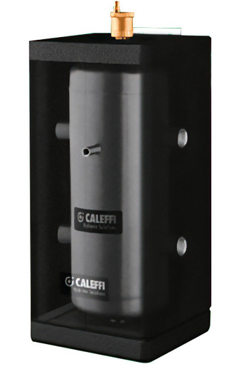 Pufferspeicher in Wärmepumpensystemen dienen dazu, überschüssige Wärme zu speichern und bei Bedarf an das Heizungssystem abzugeben. In der Serie 5485 von Caleffi übernimmt dagegen eine hydraulische Weiche mit gekoppeltem Pufferspeicher die Verteilung der Heizkreise. Die hydraulische Weiche mit Pufferspeicher wird unter Bezug auf den empfohlenen maximalen Durchflusswert am Rohrende bemessen. Bei neueren Wärmepumpen kann, je nach Maschinenleistung, von einem Mittelwert zwischen 2,5 und 3,5 l/kWh ausgegangen werden, wobei die Angaben des Wärmepumpenherstellers zu beachten sind. Die aus Edelstahl hergestellte hydraulische Weiche mit Pufferspeicher gewährleistet einen sauberen Betrieb der Heizungsanlage, so Caleffi. Die neue Serie ist sowohl für eine vertikale als auch für eine horizontale Montage ausgelegt. Eine hohe thermische Dämmung wird durch die Isolierung aus PPE gewährleistet. Durch die quadratische Geometrie ist die hydraulische Weiche mit Pufferspeicher besonders kompakt. Es gibt sie in einer Version mit 15 bis 30 l und mit 50 l Fassungsvermögen. Der Edelstahlkorpus ist komplett isoliert. Betriebsmedien sind Wasser und Glykollösungen mit einem Glykolgehalt von unter 30 %. Der maximale Betriebsdruck beträgt 4 bar und der Temperaturbereich hat eine Spanne von –10 bis 95 °C.