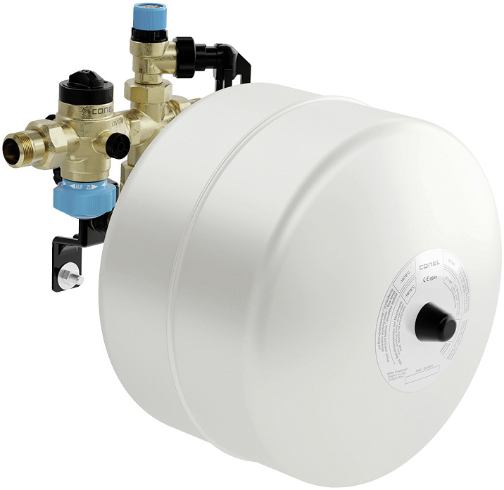Conel hat sein Produktsortiment um zwei Sicherheitsarmaturen zum Schutz von geschlossenen Trinkwassererwärmern sowie der Installation vor Überdruck erweitert. Das Sicherheitscenter Stream ist für den Anschluss von Trinkwassererwärmern bis maximal 560 l Nennvolumen geeignet und entweder mit 12- oder mit 18‑l‑Membranausdehnungsgefäß (MAG) erhältlich. Die gleichnamige Sicherheitsgruppe enthält eine Doppelabsperrung, eine Anschlussmöglichkeit für einen Manometer, ein Membransicherheitsventil mit Ablauftrichter sowie einen Rohrunterbrecher, der das Rücksaugen des Ablaufwassers verhindert. Das leicht austauschbare Membransicherheitsventil mit verschleißfestem Edelstahlsitz ist zur Anpassung an unterschiedliche Einbauverhältnisse durch einen Verschraubungsanschluss um 360° drehbar. Die Sicherheitsgruppe ist mit oder ohne Druckminderer erhältlich. Das Gehäuse der Sicherheitsarmaturen ist aus bleifreiem Messing gefertigt.