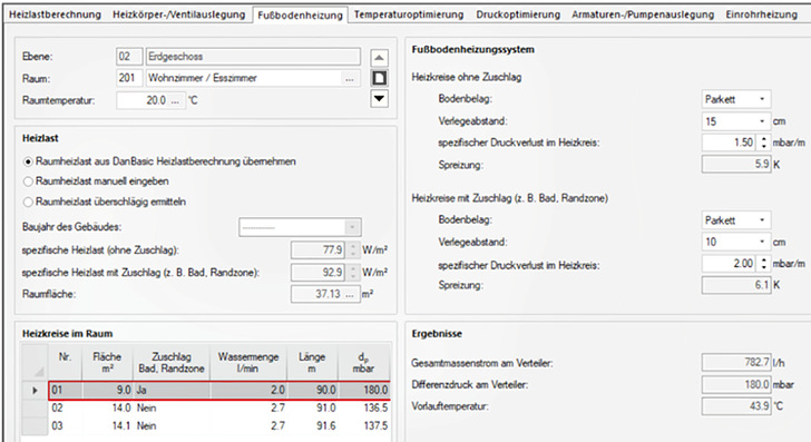 Die Softwarelösung DanBasic 7 wurde speziell für die Berechnung bestehender Heizungsanlagen in Ein- und Zweifamilienhäusern sowie kleineren Wohneinheiten entwickelt, kann aber auch zur Auslegung von Neuanlagen eingesetzt werden. Gegenüber der Vorgängerversion bietet sie nun erstmals auch ein Modul für die Berechnung bestehender Fußbodenheizungen unter Berücksichtigung der DIN 1264.