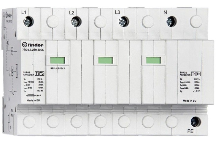 Die Firma Finder hat ihre Produktpalette um den Grobschutz von Niederspannungsanlagen (Typ1 und 2) und den Feinschutz (Typ 3) von Endgeräten erweitert. Auch für Photovoltaikanlagen bis 1200 V (DC) wurden Überspannungsableiter vom Typ 2 entwickelt. Die Schutzgeräte reduzieren die Restspannung für die Verkabelung und Geräte durch Varistoren und Funkenstrecken auf ein ungefährliches Maß. Die Überspannungsschutzgeräte sind für feste Installationen in Ein- oder Drei-Phasen-Netzen aufschnappbar auf eine Tragschiene konzipiert. Durch eine optische Anzeige wird der Betriebsstatus angezeigt. Parallel ist die Fernmeldung möglich. Die Kombiableiter (Typ 1 und 2) sind als Kompaktgerät ausgeführt, bei den anderen Versionen sind die Schutzmodule werksseitig kodiert. Sie werden auf die Basissockel gesteckt, um sie ohne zusätzliche Werkzeuge ausbauen und ersetzen zu können.