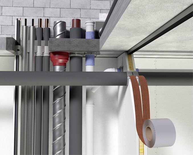 Mit dem Brandschutzband NBR-plus bietet Flamro eine teilbare Bandage aus flexiblem Glasfilamentgewebe mit innenseitig intumeszierender Beschichtung an. Diese vergrößert im Brandfall ab einer Reaktionstemperatur von 150 °C ihr Volumen um ein Vielfaches und bildet dabei eine Dämmschicht aus. Der Raumabschluss bleibt so für bis zu 90 bzw. 120 Minuten vollumfänglich erhalten – damit sind auch die für die Feuerwiderstandsklassen R90 bzw. R120 geltenden Kriterien nach DIN 4102-11 erfüllt. Die Wirksamkeit des Brandschutzbandes ist durch ein allgemeines bauaufsichtliches Prüfzeugnis (abP, P-2401/142/19-MPA BS) belegt. Das Band ist über seine gesamte Länge mittig werkseitig vorgeschlitzt und kann durch Knicken oder Schneiden geteilt werden. Besonders bei Wanddurchführungen kommt die von 125 mm auf 62,5 mm reduzierbare Breite je Wandseite der Wirtschaftlichkeit zugute und spart dort 50 % des Materialbedarfs. In Decken ist nur eine Bandage deckenunterseitig erforderlich. Ringspalte können mit marktüblichen Materialien (z. B. Mineralwolle, Mörtel etc.) verschlossen werden. Das Brandschutzband ist für die Abschottung nicht brennbarer, mit Elastomerschaum (FEF) isolierter Rohre bis zu einem Außendurchmesser von 323,9 mm ausgelegt und zugelassen. Laut Anbieter wurden alle marktüblichen Elastomerschaum-Dämmungen geprüft. Das Band eignet sich gleichermaßen für den Innen- und Außenbereich. Es ist witterungs-, feuchtigkeits- sowie UV-beständig, überstreichbar und mit einer Rollenlänge von je 10 m kartonweise erhältlich.