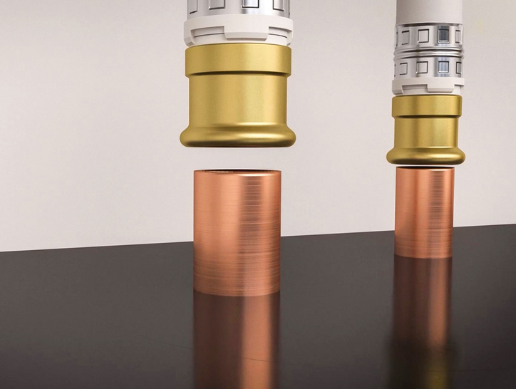 Fränkische ermöglicht mit der „Alpex F50 Profi Kupplung SST/CU“ einen Übergang von Kupfer-, Edelstahl- oder C-Stahlrohren zum Alpex-Mehrschichtverbundrohrsystem. SHK-Handwerker können auf der Metallseite mit den Presskonturen M(apress), V(iega) und SA(nha) verpressen. Der Anschluss des Mehrschichtverbundrohrs ist mit den Presskonturen F, U, TH, H und VP möglich. Der Übergang ist für Kupfer-, Edelstahl- und C-Stahlrohre mit 15, 18, 22 und 28 mm Durchmesser erhältlich. Die Einstecktiefe lässt sich über vier große Sichtfenster im Fixierring kontrollieren. Die bleifreie und mit Leckagefunktion im unverpressten Zustand ausgestattete Übergangskomponente ist in der Trinkwasser- und Heizungsinstallation bei dauerhaft 10 bar einsetzbar.