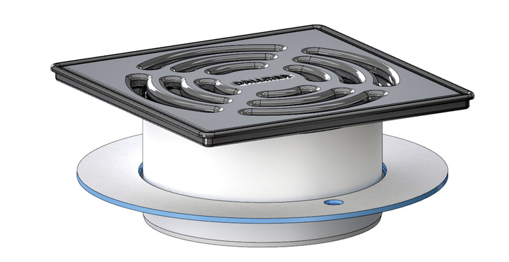 Für eine sichere Entwässerung im Schadensfall verfügt der Ablauf über eine zweite Entwässerungsebene zur Sekundärentwässerung. Die Installation des Systems erfolgt in gefliesten Duschen auf 2-%-Gefälleestrich. Der flache Absaugablauf wird über den seitlichen Ablaufstutzen (20 mm) an das Pumpsystem (12 l/min) mit wartungsfreier Pumpe angeschlossen. Die Anbindung findet über eine Steckverbindung statt.