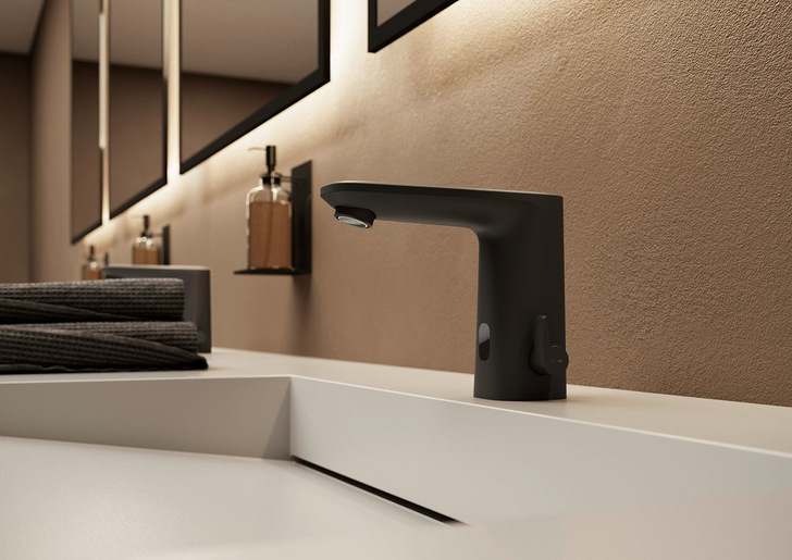 Hansa hat die Armaturenserie „HansaElectra“ überarbeitet. Es gibt sie in drei Designvarianten, zwei verschiedenen Größen und mit den Oberflächen Chrom und Mattschwarz. Herzstück ist der integrierte Sensor. Der Aufbau mit drei Linsen ermöglicht eine verbesserte Detektion und Auslösegenauigkeit. Zudem überwacht ein spezieller Sensor die Temperatur in Echtzeit und schaltet das Wasser automatisch ab, sobald eine voreingestellte Mischwassertemperatur überschritten wird. Das energiesparende und updatefähige Sensor-Design umfasst neben der Detektion auch die Konnektivität zur „Hansa 360 App“. Die smarte Armatur lässt sich in höchster Ausbaustufe über eine Bluetooth-Verbindung mittels App einzeln oder per Gateway-Anbindung sogar zentral steuern. Damit kann der Zustand jeder einzelnen Armatur innerhalb eines Gebäudes zentral abgefragt und beeinflusst werden. Spülvorgänge, Fehlfunktionen, Fehlbedienung oder fällige Wartungsarbeiten lassen sich so hinsichtlich Kosten, Zeitaufwand und Erfüllung von Hygienevorschriften optimieren.