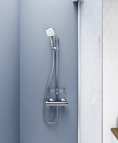 Mehr Style im Bad: Hansa erweitert das Brausenprogramm um die Variante Basicjet Style. Sie ist mit einem Softcube-Kopf von 95 mm Durchmesser ausgestattet. Das Farbkonzept: hellgrauer Brauseboden und die dunkelgrauen Sprühdüsen. Die drei Strahlarten Relaxing, Refreshing und EcoFlow lassen sich über einen griffigen Umsteller stufenlos und ganz bequem mit einer Hand einstellen. Für Schutz sorgt eine Thermo-Cool-Funktion: Aufgrund der Trennung von Wasserweg und Gehäuse erhitzt sich die Oberfläche der Handbrause nicht, was Verbrühungen vorbeugt. Zur Auswahl stehen die Handbrausen als Einzelprodukt, als Brause-Set sowie als Stangen-Sets in zwei verschiedenen Längen.