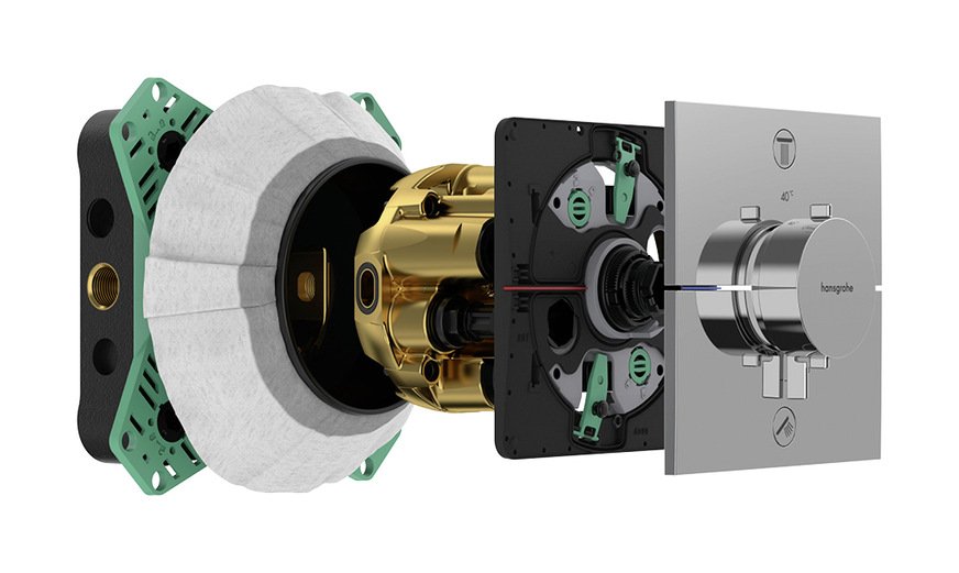 Hansgrohe hat seinen universellen Grundkörper für die Unterputzmontage weiterentwickelt. Neue Features wie die praktische Schiebehülse, eine integrierte Dichtmanschette und die vormontierte Funktionseinheit sollen für eine schnelle, flexible und sicherere Installation sorgen. Die „iBox universal 2“ ist sowohl für Wannen- als auch für Brauseninstallation geeignet und lässt sich mit allen bestehenden und künftigen Fertigsets des Herstellers kombinieren. Bei älteren Linien ist eine Adapterplatte nötig, welche separat bestellt werden muss. Entsprechend der baulichen Gegebenheiten kann vor, auf und in der Wand, auf Trägersystemen und Montageplatten installiert werden. Der Grundkörper passt sich jeder gängigen Wandtiefe zwischen 80 und 108 mm an. Bei flachen Wandaufbauten ermöglicht eine Verlängerungsrosette eine bequeme Installation. Für eine optimale Schallabsorbierung und Wärmedämmung ist das Produkt aus expandiertem Polypropylen (EPP) gefertigt.