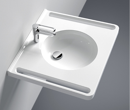 Hewi hat sein Waschtischsortiment ausgebaut. Aufgrund ihrer flachen Formgebung können die Waschtische im Stehen als auch im Sitzen genutzt werden. Die Waschtischmulde ist bei den neuen Modellen extra tief ausgebildet, sodass sich viel Wasser stauen lässt. Die integrierten Haltegriffe sind links und rechts von der Waschtischmulde eingefügt. Aufgrund ihrer ergonomischen Formgebung sind sie angenehm zu greifen. Die Waschtische sind aus Mineralguss gefertigt und verfügen so über eine leicht zu reinigende, porenfreie Oberfläche. Bewusst wird auf einen Überlauf verzichtet, damit entsprechen sie der Richtlinie für Krankenhaushygiene und Infektionsprävention des Robert-Koch-Instituts. Die neuen Modelle verfügen über eine Schwallkante. Die zur Wand hochgezogene Kante verhindert, dass Wasser auf der Silikonfuge stehen bleibt. Die Waschtische sind in zwei verschiedenen Größen erhältlich. Zur Wahl steht eine runde oder rechteckige Waschtischmulde. Wahlweise ist der Waschtisch mit einem Hahnloch oder für wandgebundene Armaturen ab sofort verfügbar.