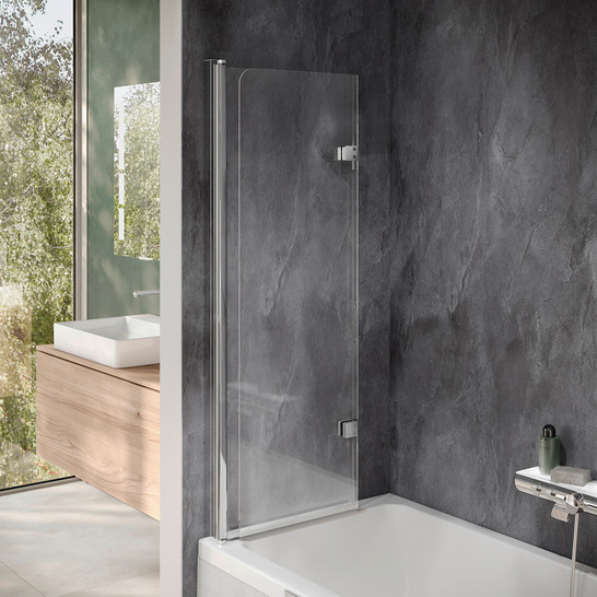 Die Duschkabinenserie „Favorit Nova“ von HSK gibt es auch mit Drehfalttüren. Damit lassen sich die 5-mm-Echtglasscheiben komplett an die Wand falten. So entsteht bei Nichtgebrauch der Dusche auch in kleinen Badezimmern Bewegungsfreiheit. Die Drehfalttüren lassen sich weiträumig öffnen, wodurch ein großzügiger Einstieg in die Duschkabine entsteht. Bei Nichtgebrauch können die Drehfalttüren komplett an die Wand gefaltet werden und kreieren Freiraum. Die beidseitigen Puffergriffe verhindern das Zusammenstoßen der Glaselemente. Die Drehfalttür-Lösung beinhaltet einen praktischen Heb-/Senk-Mechanismus, der auch bei den Dreh- und Pendeltüren für eine reibungslose Betätigung sorgt: Diese Funktion hebt die Tür beim Öffnen leicht an und senkt sie beim Schließen wieder ab. Dabei sorgen Magnetschließleisten für ein sicheres Schließen der Echtglastüren. Zusätzlich gibt es die Duschkabine weiter mit Dreh- und Pendeltür sowie als Runddusche und Badewannenaufsatz.