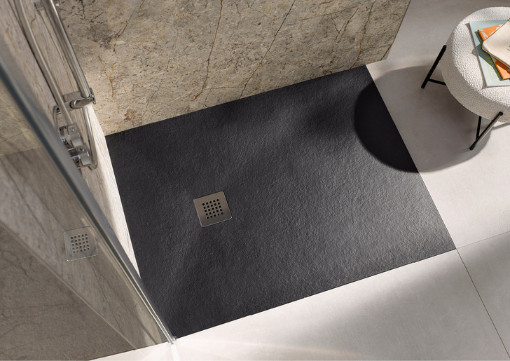 Mit „Apunto“ in Steinoptik bieten HSK eine Duschwanne, welche die Materialeigenschaften von Marmor-Polymer mit einer Größenvielfalt verbindet. Sie ist massiv ausgeführt und laut Anbieter enorm stabil, bei einer Stärke von 3 cm. Die Duschwanne ist in diesen Ausführungen erhältlich: von 80 × 100 cm bis 100 × 180 cm im Rechteck und 80 × 80 cm bis 120 × 120 cm im Quadrat. Auch optisch ist die Auswahl groß: Zusätzlich zu den etablierten Farbvarianten Weiß, Lichtgrau, Beige und Anthrazit ist sie in den Oberflächen Marquina, Betonputz und Arabescato erhältlich. Das passende Dichtset von HSK für Duschwannen gewährleistet dabei eine normgerechte und schallisolierende Abdichtung nach DIN 18534, auch an Schnittflächen. Optional erhältlich ist zudem ein Montagerahmen, der vorkonfektioniert ist und ohne Werkzeug höhenverstellbar, für Einbauhöhen von bis zu 17 cm. Federgelagerte und klebefixierte Stifte gleichen Bodenunebenheiten aus. Auch der Wannenfuß zur Mittenabstützung ist ganz einfach anpassbar.
