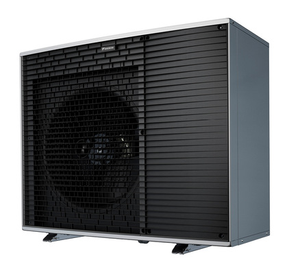 Die Luft-/Wasser-Wärmepumpe bietet einen sauggasgekühlten Scroll-Kapselkompressor sowie einen großzügig dimensionierten, mehrreihigen Al/Cu-Lamellenrohrverdampfer. Als Kondensator wird ein Edelstahlplattenwärmetauscher verwendet. Das Gerät ist in Kompaktbauweise ausgeführt, wobei der Verdampfer bereits im oberen Teil des Wärmepumpengehäuses montiert ist. Selbst die 27-kW-Variante ist mit HxBxT = 167x120x88 cm noch so bemessen, dass sie durch eine normale Türe passt.