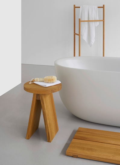 Kaldewei hat eine neue Kollektion von Badmöbeln und -accessoires ins Portfolio aufgenommen. Die Produkte wurden von dem Münchner Industriedesigner Stefan Diez entworfen und vom Interior-Label „e15“ für den deutschen Badhersteller Kaldewei entwickelt und hergestellt. Die Möbel der neuen Kollektion sind aus massiver europäischer Eiche gefertigt. Hocker und Bank, ein Fußbrett, ein Handtuchhalter und eine Badewannenbrücke erfüllen verschiedene Funktionen. Sie werden von Accessoires aus weichem, wasserabweisendem Leder ergänzt. Die warmen und natürlichen Oberflächen der Kollektion ergänzen zum Beispiel die freistehende Badewanne Oyo Duo des Anbieters aus glasiertem Titanstahl.