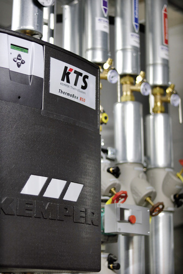 Kemper hat in Kombination mit einer optimierten Regler-Software, einer Messbereichserweiterung und hocheffizienten Pumpen die Leistung seiner KTS Thermoboxen erhöht. Erreichte früher die größte Frischwasserstation (B60/B60S) einen maximalen Entnahmevolumenstrom von 63 l/min, sind es jetzt 75 l/min. Die leistungsstärkste 4er-Kaskade bringt es nun auf 300 l/min, das entspricht einer Wärmeübertragungsleistung von mehr als 1 MW. Im Betrieb wird die Regelgüte der leistungsgesteigerten Stationen stetig verbessert, die lernfähigen Regler arbeiten hierzu mit neuronalen Netzen. Eine Kaskadenrotation vermeidet Stagnation durch einen permanenten automatischen Betriebswechsel der Frischwasserstationen untereinander.