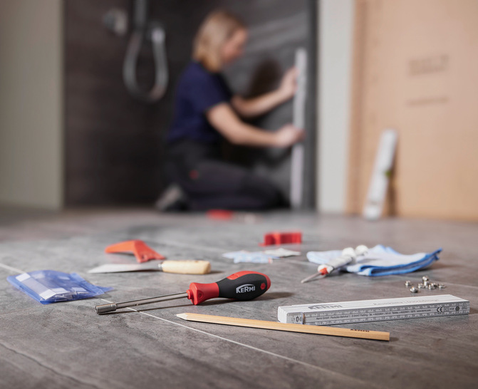 Bei KermiGlue handelt es sich um eine Klebetechnik, mit der neben ausgewählten Badewannenaufsätzen und Bauformen der Walk-In XB auch zahlreiche Duschkabinenbauformen der Serie Liga ohne Bohren montiert werden. Die Befestigung erfolgt laut Anbieter schnell, einfach und dauerhaft stabil. Der verwendete Hochleistungsklebstoff zeichnet sich durch Langzeitstabilität, Wasser- und Alterungsbeständigkeit sowie seine Belastbarkeit aus. Er haftet zuverlässig auf vielen herkömmlichen Badoberflächen, es ist lediglich eine gründliche Vorreinigung der Oberfläche nötig. Auch eine rückstandsfreie Demontage ist kein Problem. Das Klebeset, bestehend aus einem Hochleistungsklebstoff und innovativen Montagezubehörkomponenten, ist speziell für die Installation einer Dusche konzipiert.