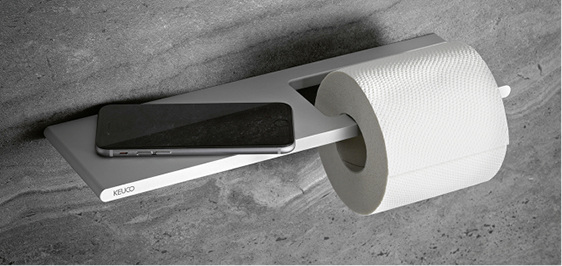 Wohin mit diversen Dingen aus der Hosentasche wie Handy & Co., wenn am WC keine Abmauerung oder Fensterbank zur Ablage in der Nähe ist? Keuco hat hierfür eine ebenso praktische wie elegante Lösung entwickelt: einen Papierhalter mit Ablage im Design der Serien „Plan“ und „Edition 400“. Der Plan-Papierhalter mit Ablage ist passend zu den Accessoires in glänzendem Chrom, mattem Aluminium-Finish und hochwertigem Edelstahl-Finish erhältlich. Auf der rutschfesten und kratzfreien Ablagefläche aus Linoleum finden Mobilgeräte, Geldstücke oder sonstige Hosentascheninhalte kurzfristig ihren sicheren Platz. Der Papierhalter der Edition 400 ist in einer Breite von 328 mm und einer Tiefe von 100 mm erhältlich. Er bietet eine großzügige Ablagefläche rund um das WC, z. B. für Mobilfunkgeräte oder Hygieneartikel für die Frau. Der filigrane Papierhalter aus hochwertigem Aluminium wertet mit seiner Anmutung jeden WC-Bereich auf. Die Aluminiumoberfläche ist gleichzeitig sehr unempfindlich, auch gegen Fingerabdrücke, und äußerst pflegeleicht.