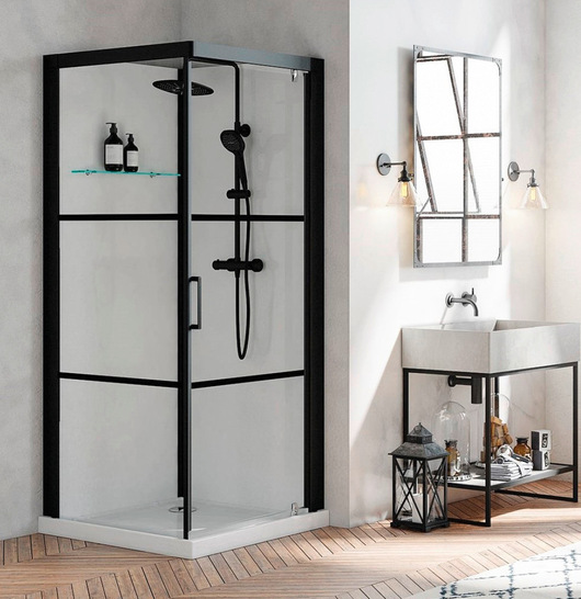 Die Serie Brooklyn von Kinedo ist im Industriestil gehalten. Es gibt sie in fünf Varianten in unterschiedlichen Größen, u. a. rechteckig, quadratisch und in Viertelkreisform. Endkunden wählen zwischen zwei Farbvarianten. Eleganz bringt die matte, tiefschwarze Oberfläche der Aluminiumprofile sowie der Duscharmaturen in der Ausführung Brooklyn Factory ins Bad. In hellgrau lackierter Optik, kombiniert mit Chrom, unterstreicht die Ausführung Brooklyn Standard die Gestaltung in einem wärmeren Ton. Die Duschkabinen sind in quadratischer und rechteckiger Ausführung jeweils mit einer Schiebetür aus 8 mm starkem Klarglas ausgestattet. In der Viertelkreisform wird eine Schiebetür aus 6 mm starkem Klarglas verwendet. Bei den quadratischen Ausführungen bieten die Kabinen zusätzlich eine Schwenktür, die ebenfalls aus 6 mm starkem Sicherheitsglas besteht.