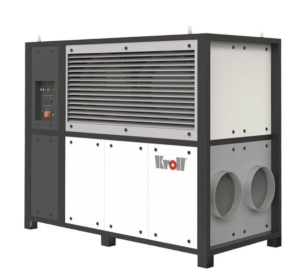 Die Verteilung der klimatisierten Luft mit einem Nennvolumenstrom von 8000 m³/h kann über einen oder mehrere Schläuche gleichzeitig erfolgen. Dabei ermöglicht die hohe externe Pressung von 300 Pa lange Schlauchanschlüsse. Durch die kompakte Bauweise ohne überstehende Geräteteile und mit Aufnahmeöffnungen zur Verladung mit dem Gabelstapler lässt sich die Wärmepumpe flexibel aufstellen. Ansaug- und Ausblasstutzen sind im Gehäuse versenkt. Das Gerät ist sicher stapelbar und verfügt über zusätzliche Kranösen.