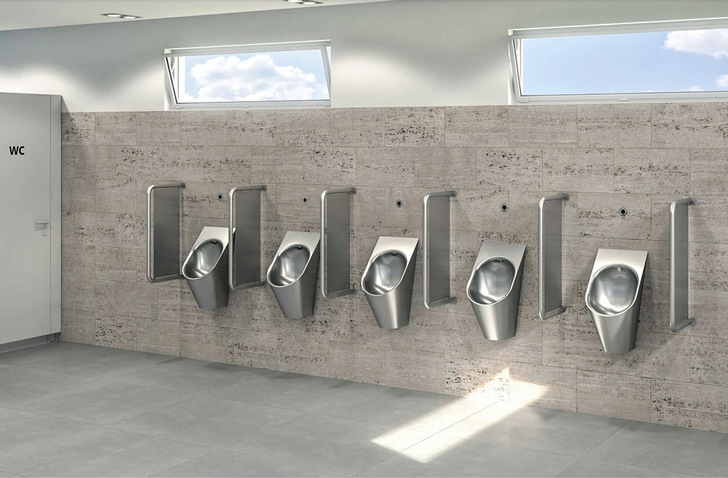 Das Campus genannte Wandurinal zur Montage von KWC Professional ist aus Chromnickelstahl gefertigt. Die ovale Beckenform verfügt über gute Ablaufeigenschaften. Die stabile, gerundete Form mit seidenmatter Oberfläche ist auch bei starker Frequentierung langlebig und leicht zu reinigen. Der ebenfalls aus Edelstahl gefertigte Spritzkopf kann über den zum Lieferumfang gehörenden Anschlussschlauch mit verschiedenen Spülarmaturen aus dem Produktprogramm des Anbieters kombiniert werden. Das Urinal ist geprüft und erfüllt konstruktiv und funktionell die Norm EN 13407.