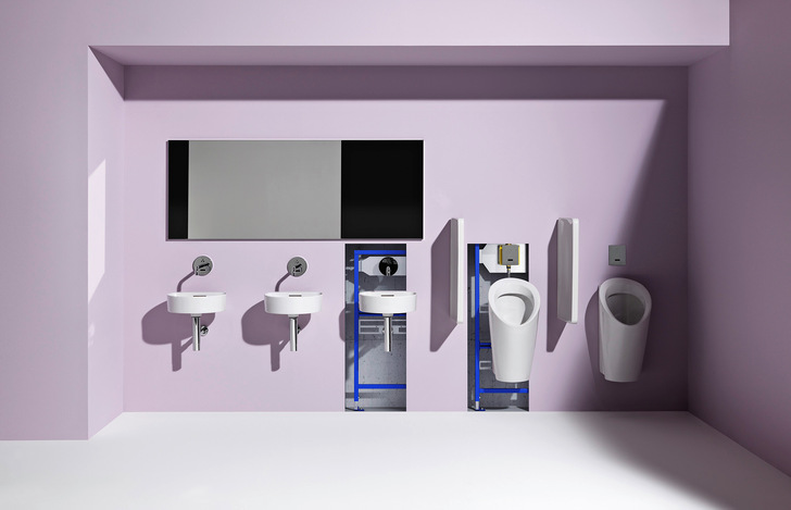 Das Installationssystem LIS von Laufen eignet sich für nahezu jede Bausituation im Trocken-, Nass- und Massivbau und für die Vor- und Inwandinstallation. Die Vorteile des selbsttragenden Stahlrahmens: Zum einen erhält der Badplaner mehr Freiheit bei der Gestaltung des Badraums, zum anderen macht die industrielle Vorfertigung die Bauzeiten und Baukosten besser planbar – und gibt Sicherheit bei der Gewährleistung sowie bei der Einhaltung der einschlägigen Normen (EN14055 Klasse 1 und 2). Zudem reduzieren sich die Kosten, denn die vereinfachte Planung spart Zeit. Und auch die Montage- und Rüstzeiten des Handwerkers sinken, denn für die Montage und Justierung des Vorwandelements selbst ist nur eine Person nötig. Das System bietet Lösungen für Waschtische und Bidets sowie für wandhängende und bodenstehende WCs. Auch Dusch-WCs können eingebunden werden, es gibt für sie ein eigenes Vorwandelement, das auch die Option offenhält, ein Dusch-WC zu einem späteren Zeitpunkt nachzurüsten. Für seine Urinale bietet der Hersteller ebenfalls unterschiedliche Optionen an: Erhältlich sind vorkonfigurierte Vorwandelemente für Urinale ohne integrierte Steuerung, mit integrierter Steuerung und wasserlose Urinale. Zum Lieferumfang aller Vorwandelemente gehört ein Bauschutz-Set, das die Anschlüsse bis zur Endmontage der Badobjekte vor versehentlichen Beschädigungen im weiteren Bauverlauf schützt, Schallschutz-Sets sind ebenfalls erhältlich.