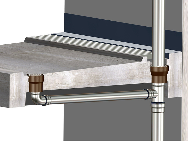 Die Abläufe der Loro-Serien I und IV wurden speziell für die Entwässerung von Balkonen aus Betonfertigteilen entwickelt. Die Serie IV aus feuerverzinktem Stahl eignet sich mit Glocke ohne Haltenocken für den direkten Einbau in Balkone aus wasserundurchlässigem Beton in Platten von 95 bis 220 mm Dicke. Mit dem flexibel positionierbaren Aufnahmering bleibt der Einschubwinkel für das von oben kommende Rohr bei der bauseitigen Montage frei wählbar. Dadurch ist ein sicherer Ablauf über mehrere Geschosse einfach realisierbar. Eine zusätzliche Befestigung in der senkrechten Version (bis 3 m) ist durch die Lagesicherheit der Abläufe für das Rohrsystem nicht notwendig. Die Serie I gibt es mit senkrechtem und mit seitlichem Ablauf. Sie ist für den Einbau im Betonwerk optimiert: Die Balkonplatte kommt dann mit einbetoniertem Grundkörper zur Baustelle. Dort sind nur noch die Siebe einzusetzen und die Fallrohre können durch den Ablauf ohne zusätzliche Langmuffe problemlos montiert werden. In der senkrechten Ausführung lässt die integrierte Glocke die Steckmuffe verschwinden und ist als Einzel- oder Direktablauf lieferbar. Die Serie I gibt es in der senkrechten Version in DN 50, DN 70 und DN 100.