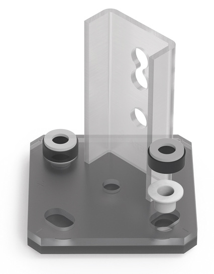 Mit dem Halter 45 I/q zur Befestigung von Montageschienen ist eine Längs- und Quermontage möglich. Der Halter passt für 45er-Schienen und ist für den Innen- und Außeneinsatz geeignet. Für Außenbereiche sind feuerverzinkte Varianten mit erhöhtem Korrosionsschutz lieferbar, für Innenbereiche galvanisch verzinkte. Der universell verwendbare Halter hat eine quadratische Grundplatte mit gefasten Ecken und eine Seitenlänge von 100 mm. Er ist für alle C‑Profile mit einer Breite von 45 mm und einer maximalen Höhe von 52 mm bei Längsausrichtung der Schiene geeignet.