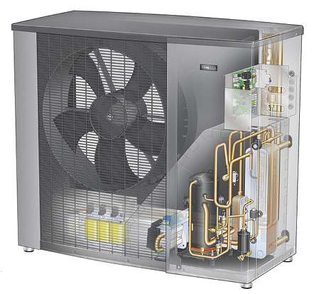 Aufgrund ihrer technischen Eigenschaften eignet sich die Luft-Wasser-Wärmepumpe F2120 von Nibe für den Einsatz im Neubau und Bestand sowie zum Heizen und Kühlen. Die mit einer leistungsgeregelten Verdichtertechnologie ausgestatteten Monoblock-Geräte stehen in Leistungsgrößen für bis zu 8, 12, 16 und 20 kW Gebäudeheizlast zur Verfügung. Für höhere Leistungsbedarfe lassen sich bis zu acht Geräte in einer Kaskade betreiben. Der nominelle Schallleistungspegel (gemäß EN 12102 bei A7/W45) liegt z. B. bei den Gerätegrößen 16 und 20 bei 53 dB(A).