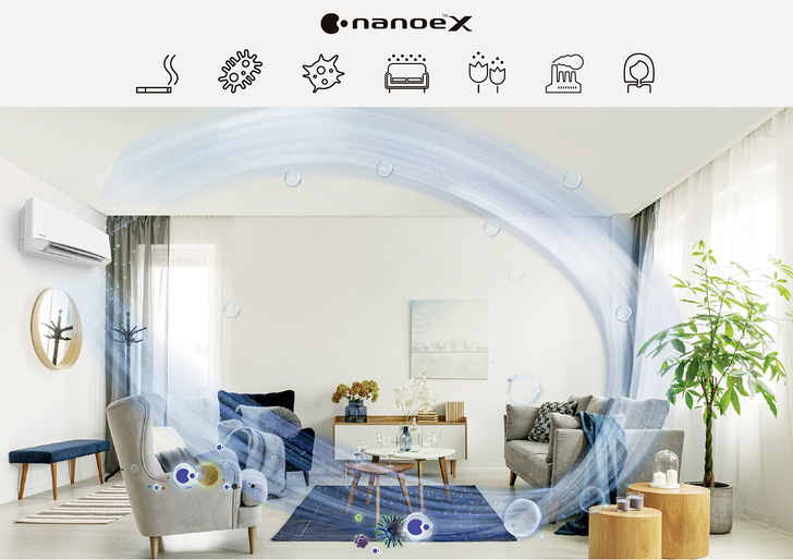 Die Hydroxylradikale reagieren mit Viren, Bakterien und Allergenen, aber auch Gerüchen und hemmen diese nachweislich. Das funktioniert sowohl in der Luft als auch auf Oberflächen. Bedingt durch ihre winzige Größe können die Nanoe X-Partikel sogar tief in Polster und Stoffe eindringen und dort ihre Wirkung entfalten. Das System ist bereits für eine Vielzahl der Innengeräte von Panasonic verfügbar – weitere kommen in den nächsten Monaten dazu.