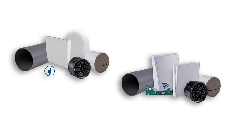 Mit der iconVent-Serie bietet Pluggit eine dezentrale Lüftungslösung mit Wärmerückgewinnung für Ein- und Mehrfamilienhäuser. Die Geräte erreichen Rückgewinnungswerte von bis zu 91 % und lassen sich durch geringe Kernlochbohrung von 162 mm einfach nachrüsten. Der kompakte Wärmetauscher ermöglicht eine platzsparende Installation. Das Modell iconVent 200 arbeitet mit Bluetooth-Mesh-basierter Smart-Home-Funktechnologie. Es können bis zu 10 Lüftereinheiten paarweise betrieben werden, bei zwei möglichen Steuerungen pro Verbund. Jedes Gerät benötigt lediglich einen 230-Volt-Anschluss zur Kommunikation. Mit einem Schalldruckpegel von 26 dB bei 39 m³ Luftvolumenstrom pro Stunde sowie Energieeffizienzklasse A+ erfüllt das System hohe Anforderungen an Energieeinsparung und Geräuscharmut. Für kostenoptimierte Projekte ist das Einzelraumgerät iconVent 165 ausgelegt. Es verfügt über einen integrierten Feuchtesensor und einen nicht deaktivierbaren Wohnungswirtschaftsmodus, der kontinuierlichen Feuchteschutz sicherstellt. Der Einsatz ist ab einer Wandstärke von 180mm möglich, wobei bis zu sieben Geräte angebunden werden können.