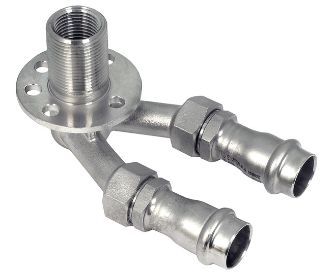 Sanha ergänzt sein Sortiment für die Trinkwasserinstallation mit Wanddurchführungen in Kombination mit Doppelwandscheiben. Damit lässt sich hinter Trockenbauwänden eine Schleifen- oder Ringinstallation realisieren. Die Wanddurchführungen und Doppelwandscheiben bestehen aus Edelstahl (Werkstoff-Nummer 1.4404). Es gibt sie in verschiedenen Längen von 25 bis 65 mm. Eingesetzt werden sie mit dem System NiroSan. Sanha liefert die Doppelwandscheiben in den Dimensionen 15 bis 22 mm. Die Durchführungen verfügen über ein Außengewinde (¾" G) sowie ein Innengewinde (Rp ½").