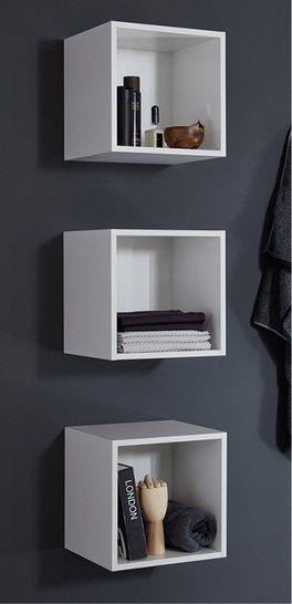 Cubes heißt das neue Regalsystem von Sanipa. Die Module sind 35 cm breit und in den drei Höhen 35, 70 und 105 cm und jeweils in den Tiefen 33 und 18 cm erhältlich. Sie werden vom Kunden individuell zusammengestellt. An kleinen und an großen Wandflächen schaffen Cubes zusätzlichen Stauraum oder erzeugen attraktive Dekorationen. Die Flexibilität des neuen Regalsystems zeigt sich bei der Anordnung: Je nach Bedarf kann man einzelne Cubes einsetzen oder ganze Regalwände aus offenen und/oder geschlossenen Elementen planen. Bei den geschlossenen Schrankmodellen sorgen grifflose Türen mit Push-to-open-Technik und gedämpftem Türanschlag für unsichtbare Ordnung. Um den Türanschlag wahlweise auf der rechten oder linken Seite zu ermöglichen, können die geschlossenen Schränke um 180° gedreht montiert werden. Möbelfront und -korpus haben bei Cubes immer die gleiche Farbe. Zur Auswahl stehen dafür insgesamt 15 Oberflächenvarianten mit Folien- und Melaminfarben in aktuellen Holzoptiken sowie matten und hochglänzenden Trendtönen.