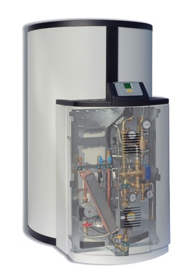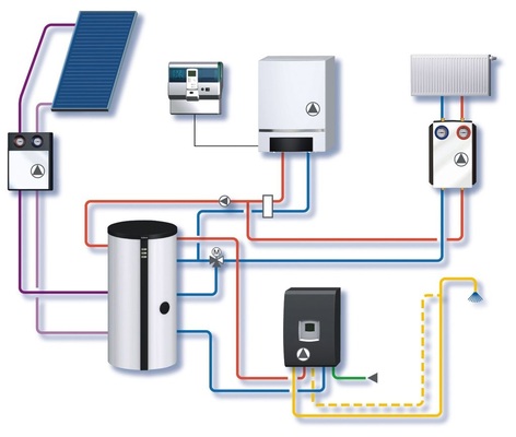 Das Solarsystem Ratiocompact 700 vereint heizungsunterstützende Anlage und Frischwasserstation zu einer Anlage mit flexiblen Aufstellmöglichkeiten. Im Installationsraum befinden sich der 700 l Pufferspeicher und der Hydraulikblock, welcher formschlüssig direkt an den Speicher gesetzt wird. Alternativ kann eine Variante für die Wandmontage gewählt werden. Die Hydraulikeinheit beinhaltet die Solarstation, das Frischwassermodul und die Verbindung zwischen Solarspeicher und Heizung. Das System bietet die Möglichkeit, Solarenergie entweder über eine Rücklaufbeimischung des Heizkreises einzubinden oder ein Puffersystem zu betreiben. Bei Letztgenanntem wird der Speicher wie eine hydraulische Weiche eingebunden. Die Heizkreisgruppe ist in diesem Fall schon integriert. Die Einbindung diverser Heizquellen wie Gastherme, Ölkessel oder Pelletkessel ermöglicht einen universellen Einsatz.
