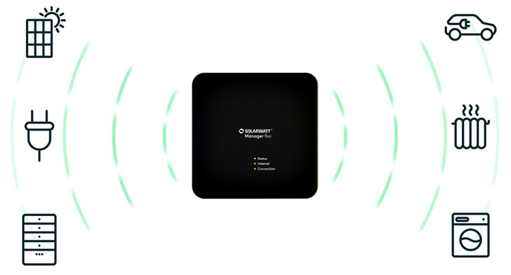 Der weiterentwickelte Energiemanager Solarwatt Manager Flex ist einfach zu installieren und optimiert das gesamte dezentrale Energiesystem. Er steuert die Energieflüsse so, dass möglichst viel selbst erzeugter Solarstrom im Haushalt oder im Gewerbebetrieb verwendet wird, und ermöglicht die einfache Integration eines Elektroautos oder einer Wärmepumpe. Dabei kann der Energiemanager flexibel über das Solarwatt Manager Portal gesteuert werden. Optimiert werden die Energieflüsse entweder mit Blick auf eine möglichst hohe Eigenverbrauchsquote oder die größte Kostenoptimierung.