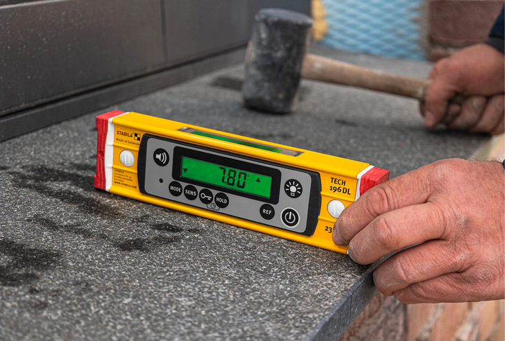 Die neue Generation der Elektronik-Wasserwaagen von Stabila, Tech 196 DL und Tech 196M DL, verfügen über zwei Digital-Displays zur verzögerungsfreien Messwertermittlung von Neigungen, Gefällen und Winkeln. Nach IP 67 sind die neuen Elektronik-Wasserwaagen optimal vor Staub und Wasser geschützt. Und zwar so gut, dass sie sogar zeitweilig untergetaucht werden können – bis zu 30 Minuten bei 1 m Wassertiefe. Dank der unempfindlichen Folientastatur lassen sich verschmutzte Tasten nach getaner Arbeit ganz bequem reinigen. Das Modell Tech 196M DL ist mit starken Magneten ausgestattet.