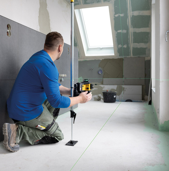 Bei den akkubetriebenen Multilinien-Lasern Lax 600 und Lax 600 G von Stabila handelt es sich um vielseitige Messwerkzeuge für Anwendungen im Innenbereich. Drei 360°-Linien ermöglichen das Nivellieren in der horizontalen und vertikalen Position zur gleichen Zeit, zwei rechtwinklig zueinander stehende vertikale Linien eine Raumaufteilung in viermal 90°. Ergänzt wird dies durch ein Lot nach oben und unten, erzeugt durch den Schnittpunkt der Vertikallinien, sowie eine Horizontallinie für Höhenübertragungen und Layoutarbeiten. Die beiden Modelle unterscheiden sich vor allem durch die Farbe der Laserlinien: Beim Lax 600 sind diese rot mit einer Reichweite von bis zu 30 m, beim Lax 600 G sind sie grün und damit noch besser sichtbar bei einer Reichweite von bis zu 40 m. In der Handhabung sind beide neuen Multilinien-Laser identisch. Nach der Selbstnivellierung mithilfe der Pendeltechnologie ist der Laser sofort bereit für den Einsatz.