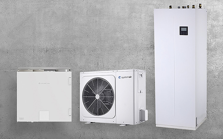 Eine Komplettlösung zum Lüften, Heizen, Kühlen und zur Warmwasserbereitung ermöglicht die Kombination der Wärmepumpe SYSHP Mini Split mit dem Lüftungsgerät SAVE VTR 275. Ergänzend gibt es ein umfangreiches Zubehörprogramm. Die mit einem DC-Doppelrotations-Inverterverdichter ausgestattete Split-Wärmepumpe (Kältemittel: R32) ist in fünf Baugrößen mit Heizleistungen im Bereich von 7 bis 16 kW verfügbar.