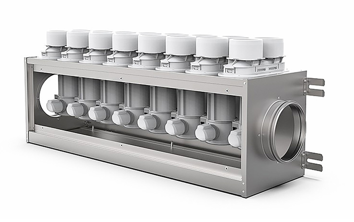 Mit der Wohnraumlüftung RAV Control („Room Air Volume-Control“) ist eine automatische, raumweise Regelung des Luftvolumenstroms möglich. Mit sensorgeregelten Regulierungsklappen garantiert das System eine automatisierte, gezielte und ausbalancierte Belüftung einzelner Räume. Gleichzeitig reduziert RAV Control den Gesamt-Luftaustausch auf das Notwendigste. Permanent werden Qualität und Volumenstrom der Raumluft überprüft und jeder Bereich mit der optimalen Luftmenge versorgt. Zudem ist kein Luftüberstrom mehr von Raum zu Raum nötig. Da in jedem Raum nur Luft abgesaugt wird, gibt es keine Zugerscheinung und Luftgeräusche mehr. Weitere Vorteile: keine Kanaldimensionierung nötig und selbstständige Einjustierung der Luftmengen.